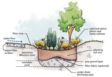 Worked with local government staff to design and manage construction of bioretention “rain garden” cells to intercept and filter parking lot runoff at the Freeland Library and the Island County Annex Building.
